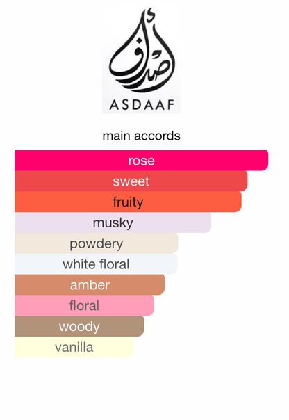 Ameerat Al Arab Prive Rose by Asdaaf is a Floral Fruity fragrance for women. This is a new fragrance. Ameerat Al Arab Prive Rose was launched in 2023. Top notes are Strawberry, Grapes and Orange; middle notes are Rose, White Musk, Jasmine, Gardenia, Ylang-Ylang and Lily; base notes are Tonka Bean, Amber and Sandalwood.