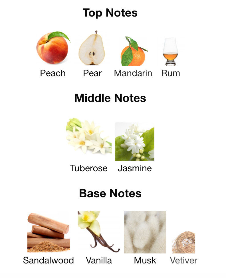 Top Notes: Pear, Peach, Mandarin, Rum