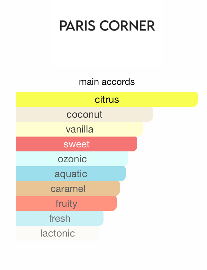 Introducing Coconut Lagoon fragrance, a unisex scent by Paris Corner. With notes of lemon, mandarin, and bergamot, it invites relaxation and freshness. As the fragrance develops, hints of apple, watermelon, and caramel emerge, evoking memories of tropical sunsets. Base notes of vanilla and coconut provide a creamy and comforting finish. Experience a tropical oasis with every wear.