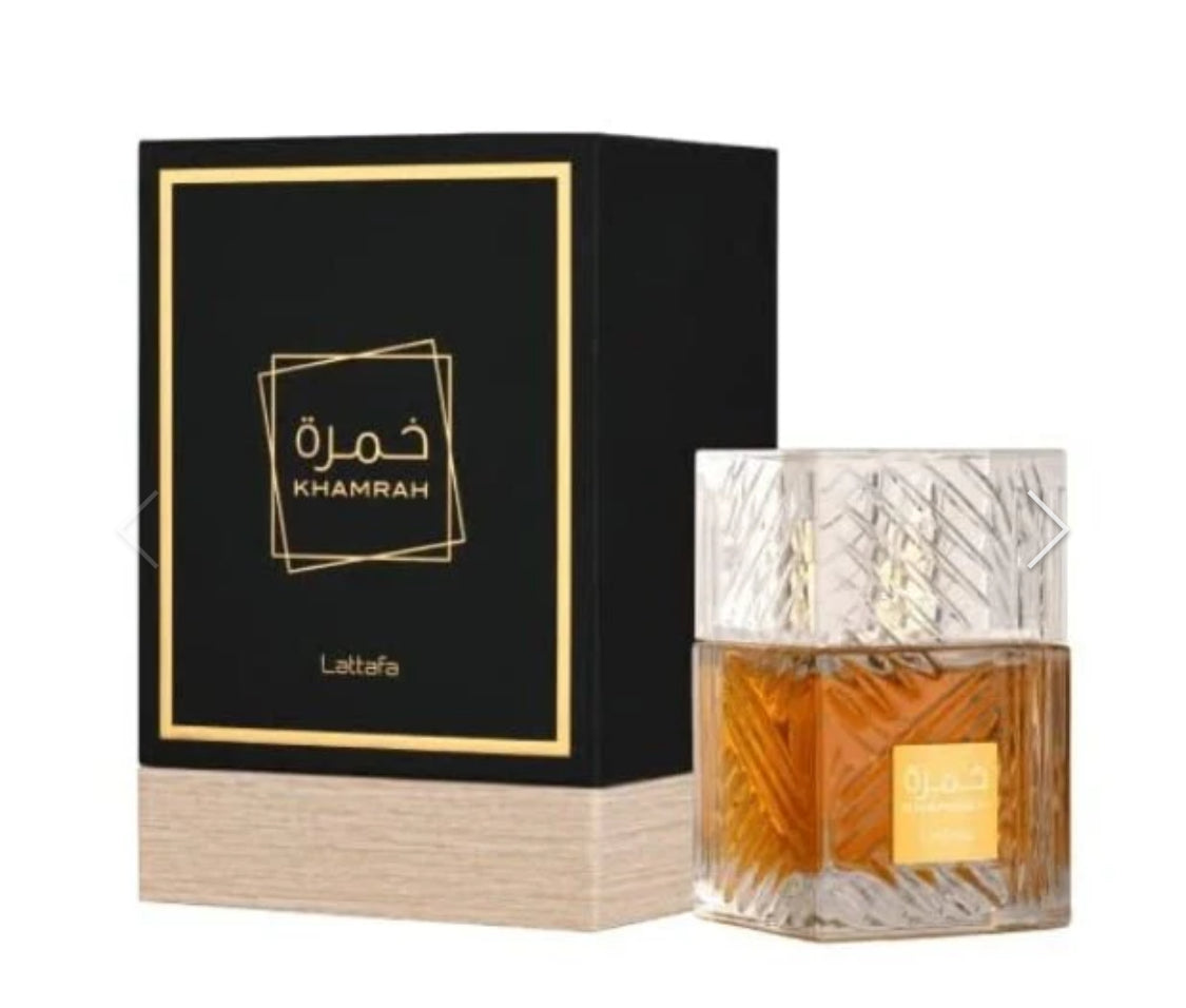 Khamrah by Lattafa Perfumes is a Aromatic Spicy fragrance for women and men. This is a new fragrance. Khamrah was launched in 2022. Top notes are Cinnamon, Nutmeg and Bergamot; middle notes are Dates, Praline, Tuberose and Mahonial; base notes are Vanilla, Tonka Bean, Benzoin, Myrrh, Amberwood and Akigalawood.